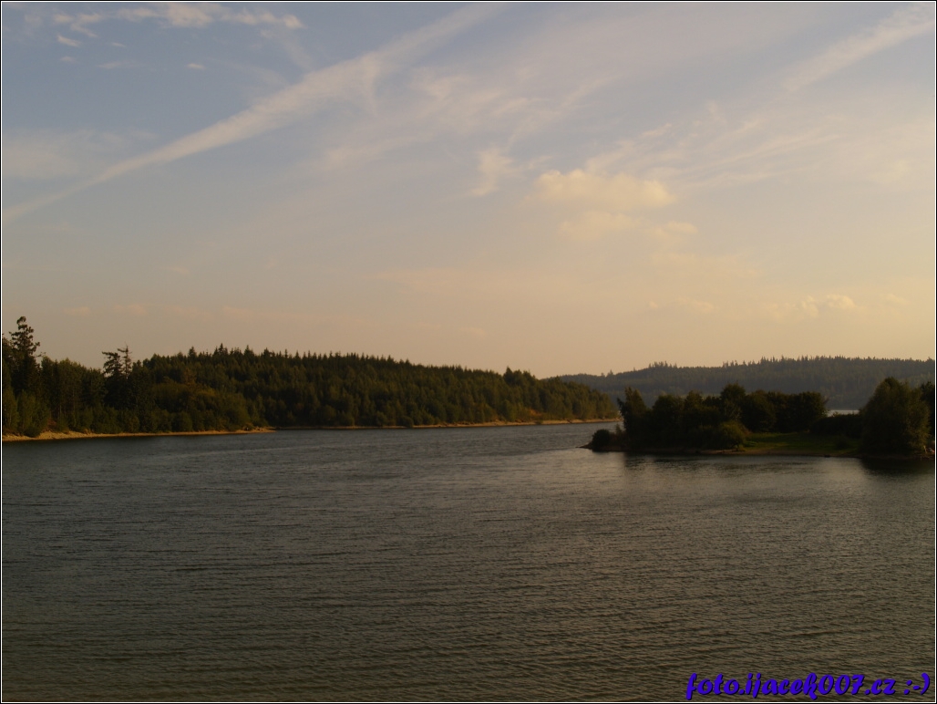 pohled na vodní hladinu i lesy okolo