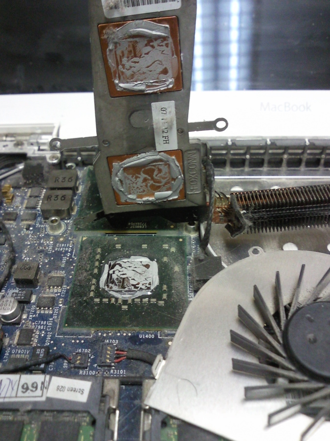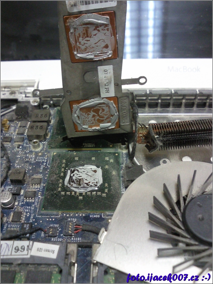 mac book pohled na starou chladicí pastu na procesorech