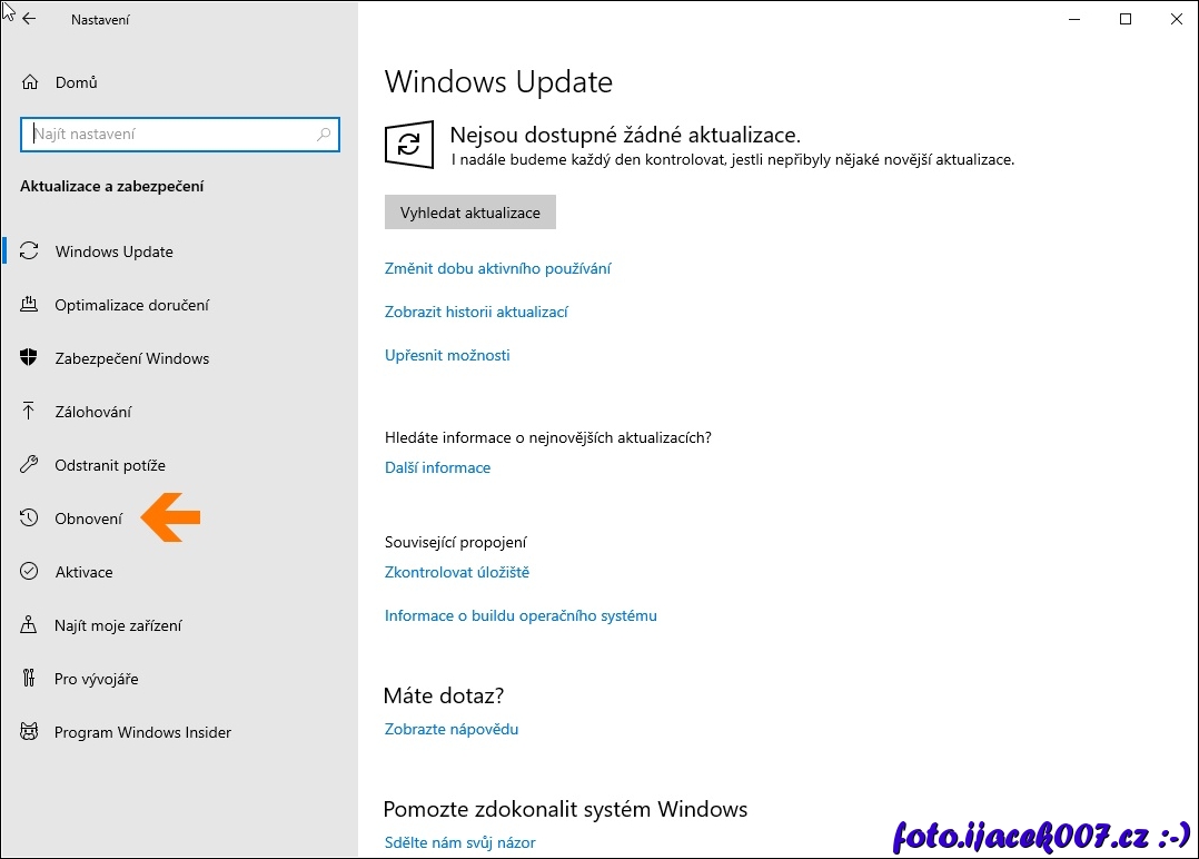 Windows 10 nastavení obnovení