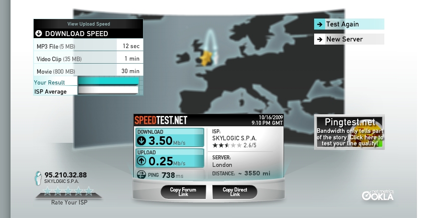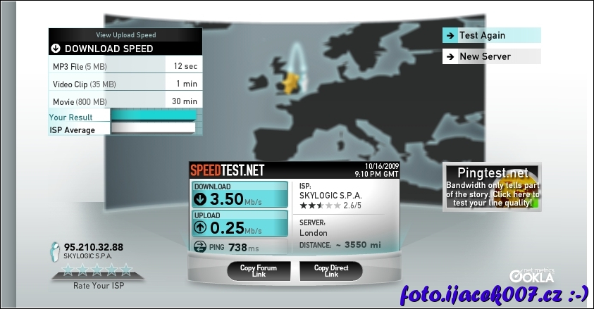 Výsledek testu rychlosti satelitního internetu tooway
