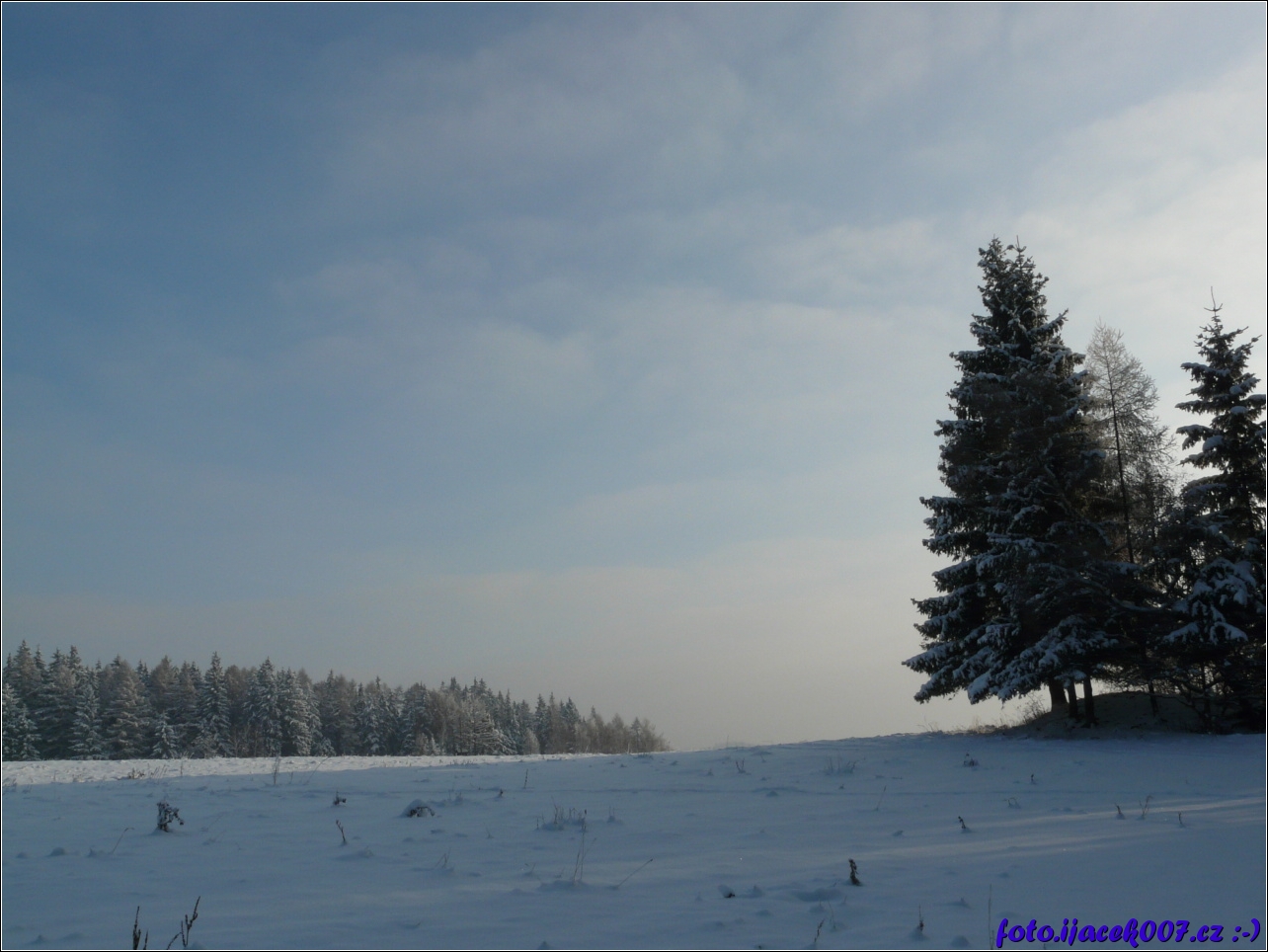 pohled na zasnězenou louku