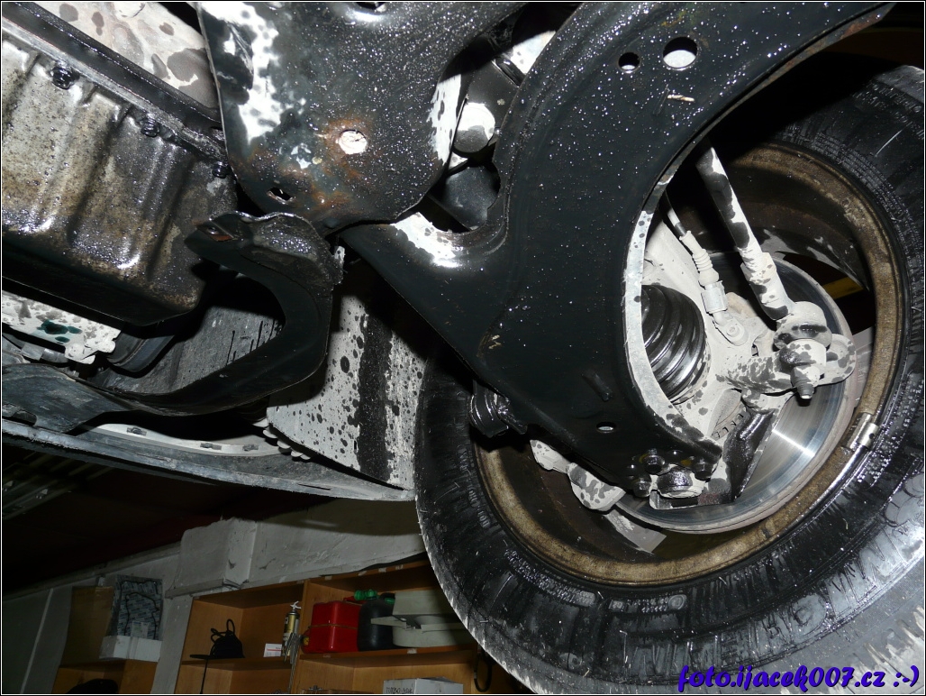 je vidět jak se olej rozlil po celém spodku auta